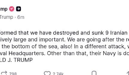 Колишній президент США Дональд Трамп оголосив про затоплення дев’яти іранських…