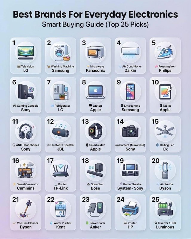 У мережі з’явилася «шпаргалка» з кращими брендами техніки, де для кожної категорії представлено одного лідера. Це викликало жваву дискусію серед користувачів. Які ваші думки щодо цього списку? Чи можливо ви маєте свої фаворити? Долучайтеся до обговорення!